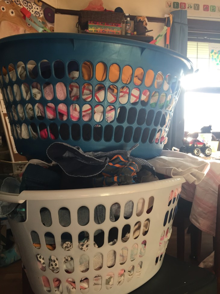 Another day I went through the drawers of clothes in the girls’ room and filled three large bags to take to a charity bin. This task was constantly interrupted by feeding, settling and resettling Baby M. I should also mention that in the week where I had this sudden burst of cleaning energy, all of the children took turns to get sick and stay home from school. The girls repeatedly asked me to play with them and spend time with them, but I was determined to use whatever precious time I had to clean instead. One night I went to bed with a tidier kitchen but the rest of the house in disarray, and scrolling through Facebook I saw a post from another mother who also had had all of her children home sick that day. Her photos featured children with bright smiles playing a game of Monopoly and enjoying chicken soup. Clearly she had enjoyed the chance for quality time with her kids. I had resented mine.